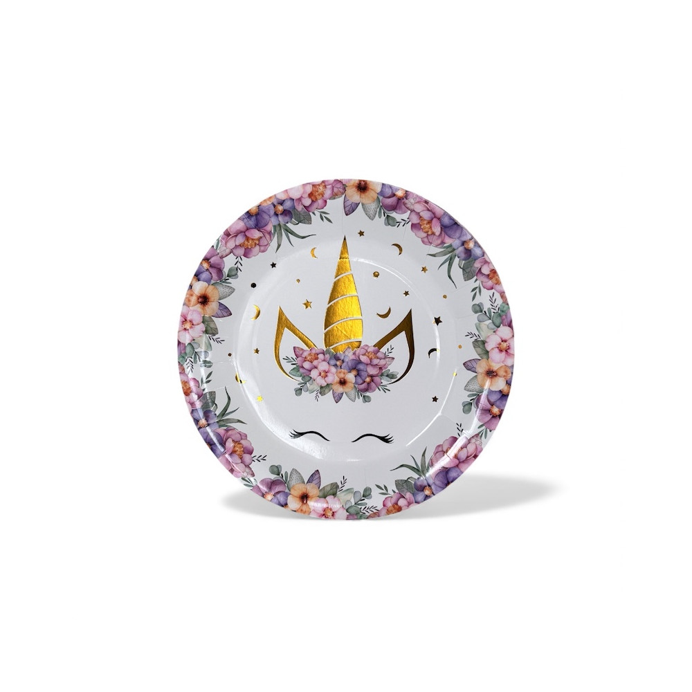 10 stk flotte Enhjørning papptallerkener med gullfarget horn.