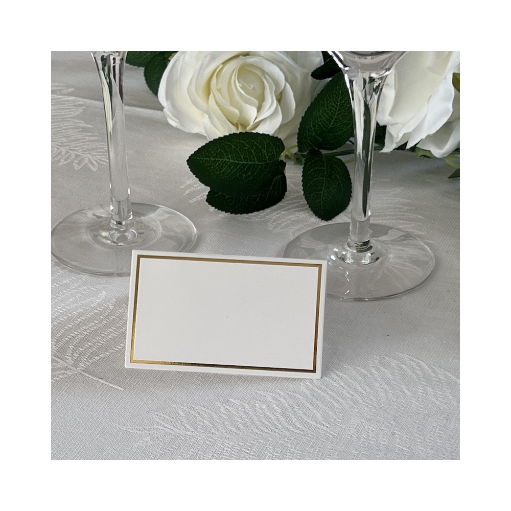 10 stk hvite bordkort med gullkant på forsiden. Elegante bordkort som gir et stilig preg til festbordet.