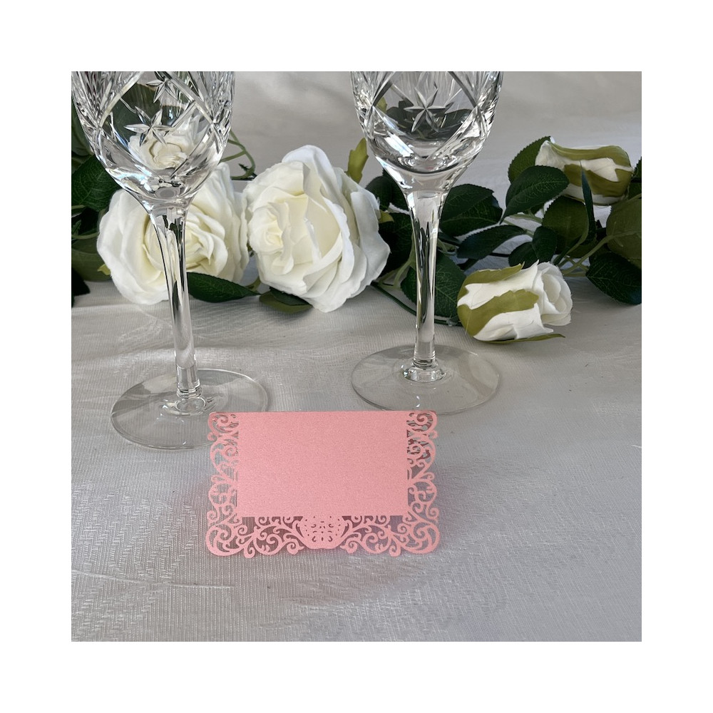 10 stk rosa bordkort med laserkuttet kant på sidene.