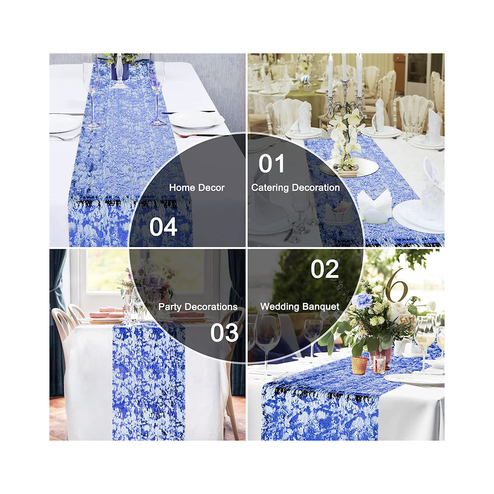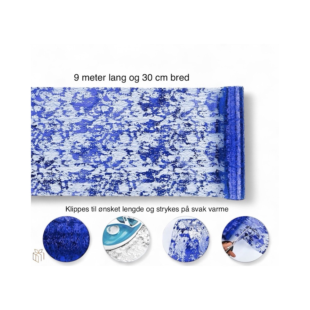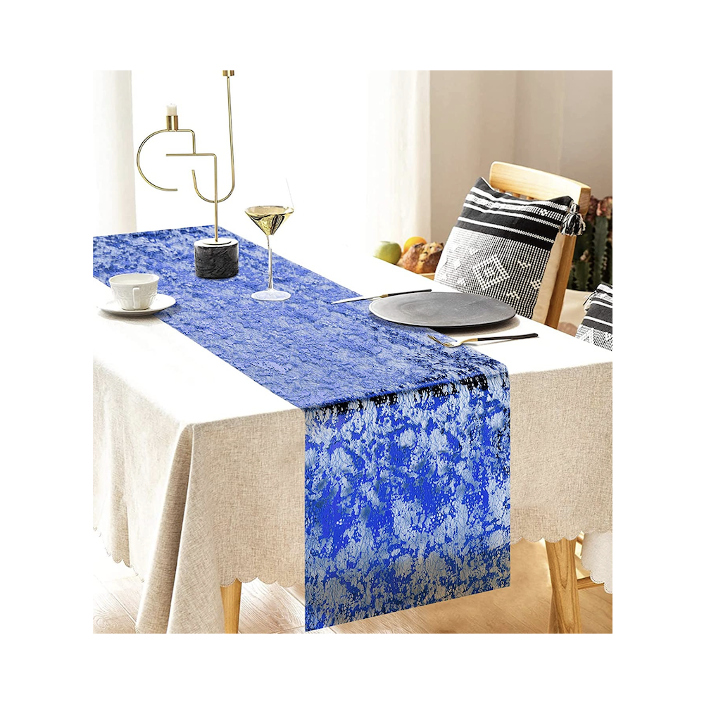 Rull med 9.1 meter lang nydelig blå bordløper med glitter.
