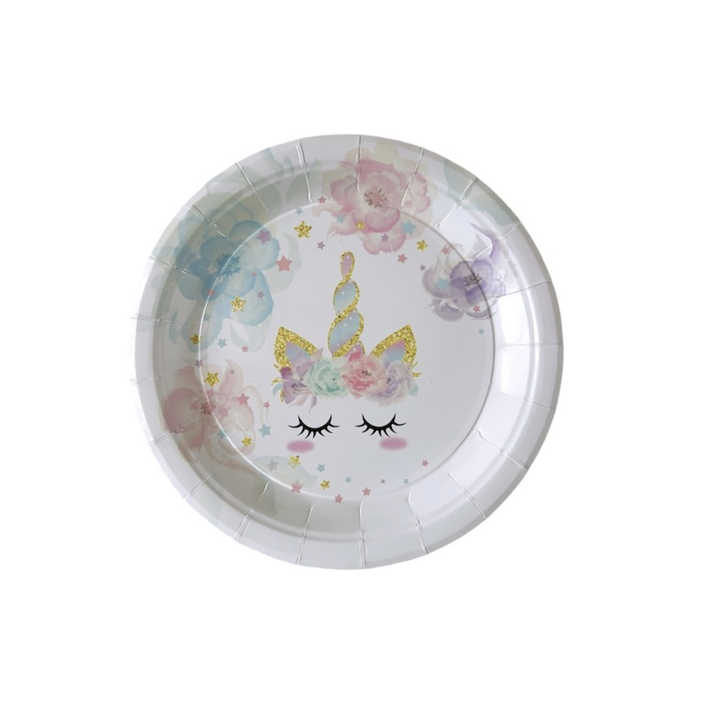 8 stk store Enhjørning papptallerkener.