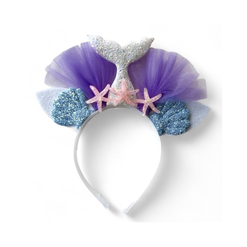 Nydelig hårbøyle med glittrende havfruehale og lilla tyll. Perfekt til alle små Havfruer.