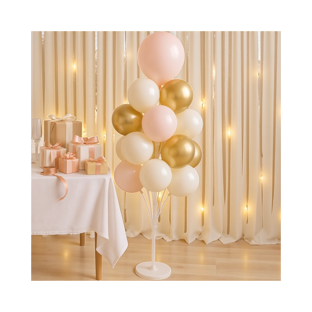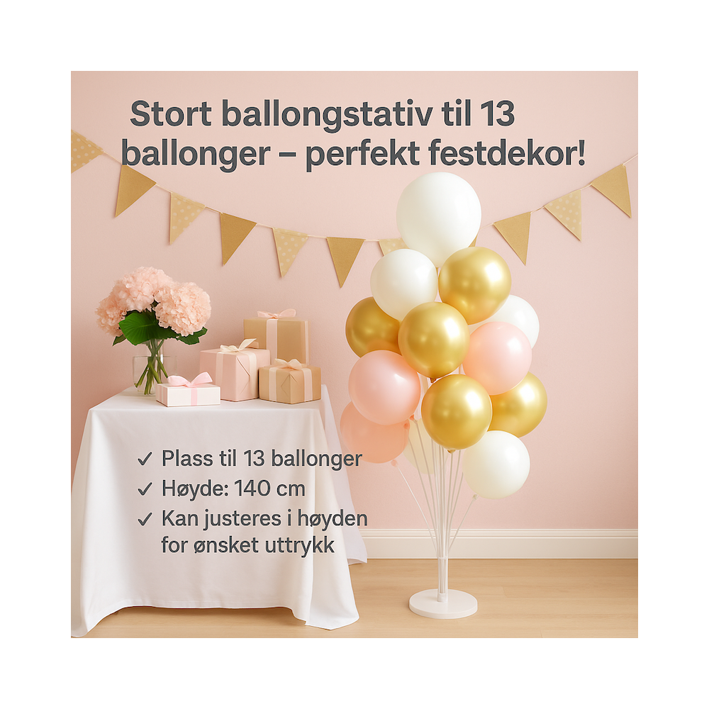 40 stk flotte ballonger i nydelig grønt, hvitt og gull. Ballongene er fordelt på gull metallicballonger, hvite og salviegrønne latexballonger samt gull konfettiballonger.