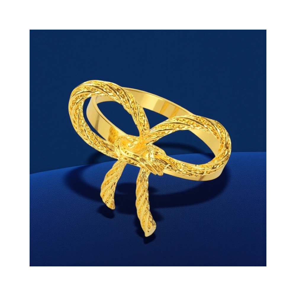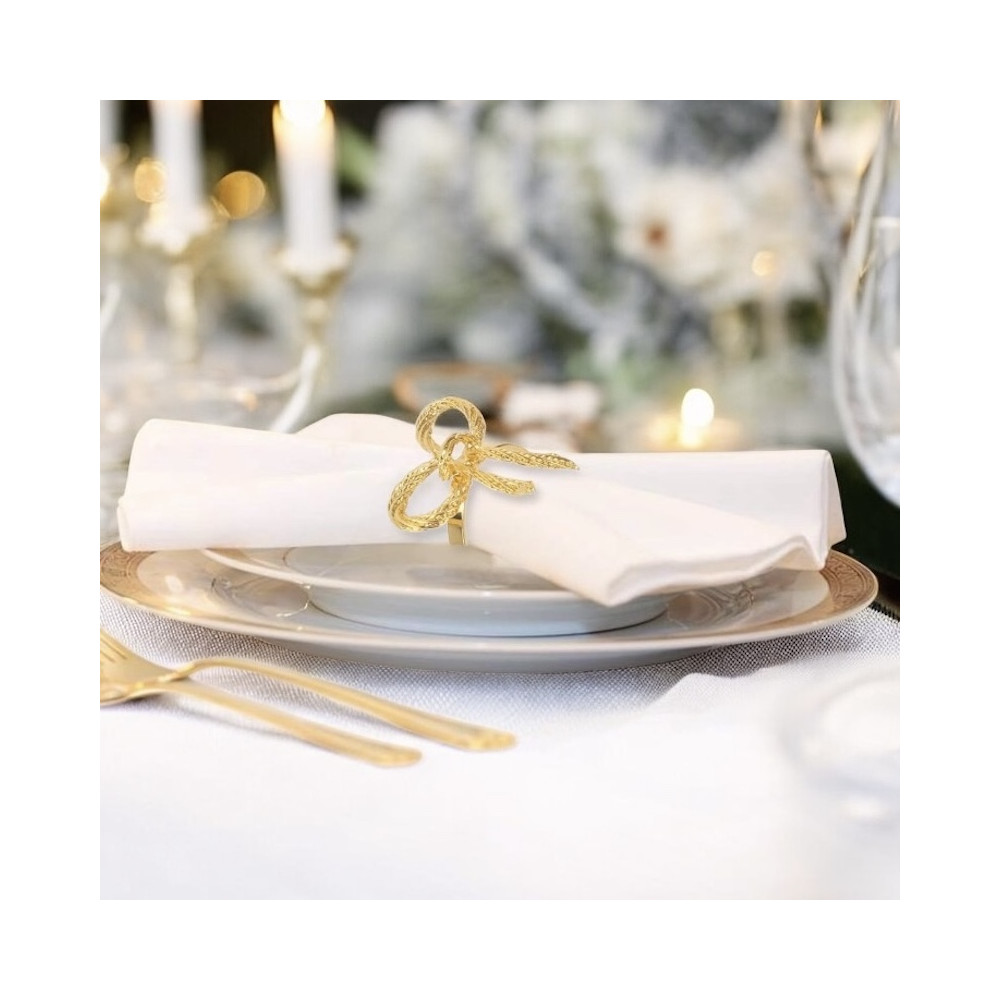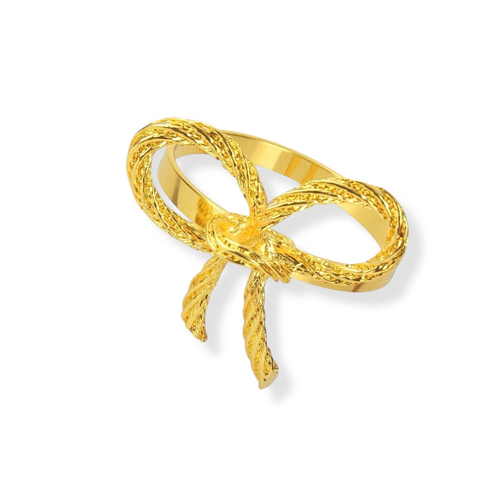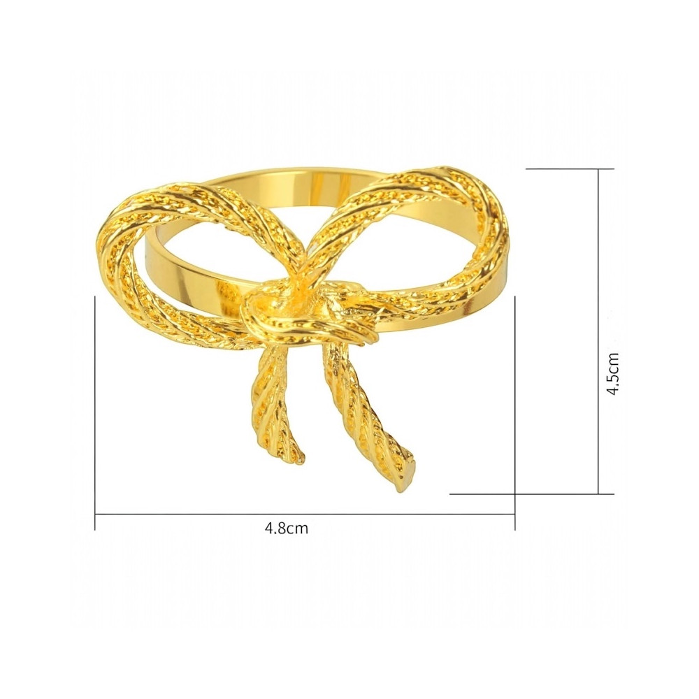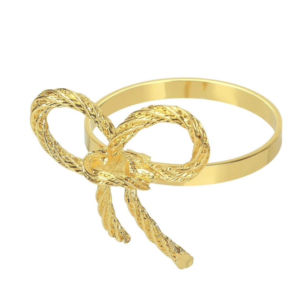 Nydelig gullfarget serviettring formet som en sløyfe.