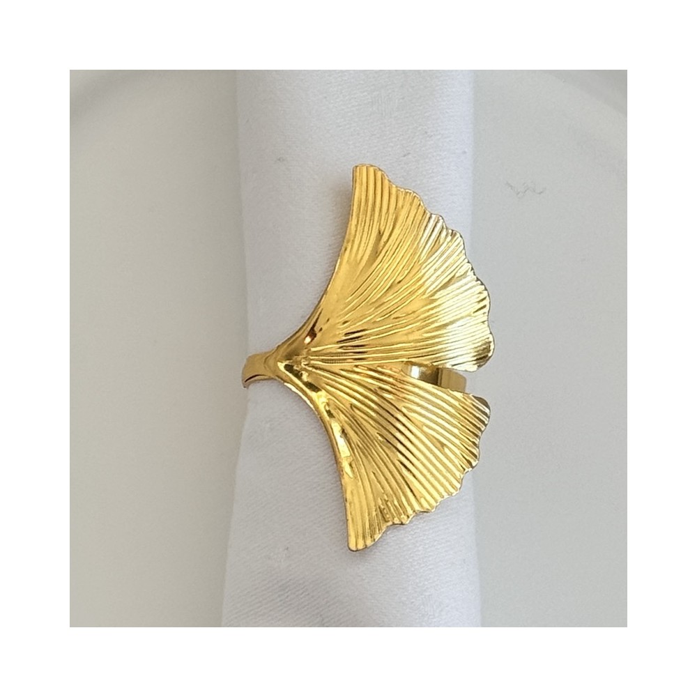 Flott gullfarget servietting i lett metall. Innvendige mål er 4 cm og selve bladet er 8 cm langt og 5 cm bredt.