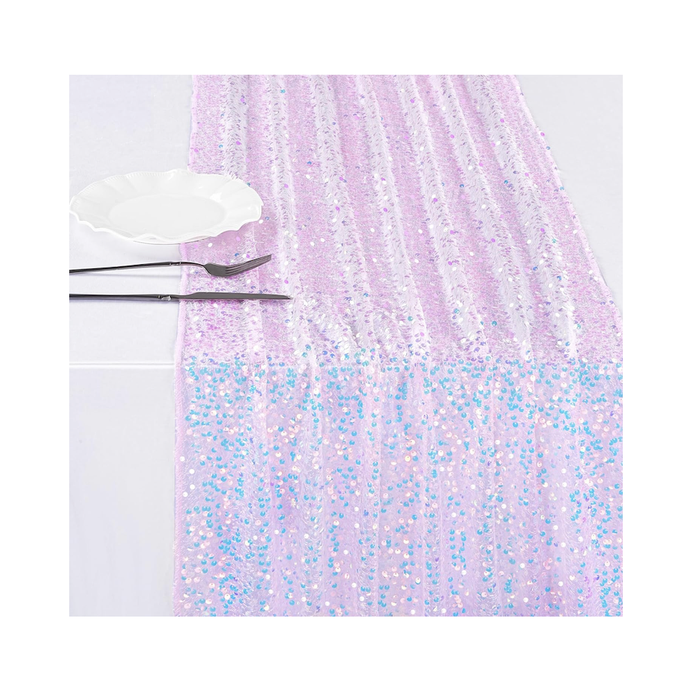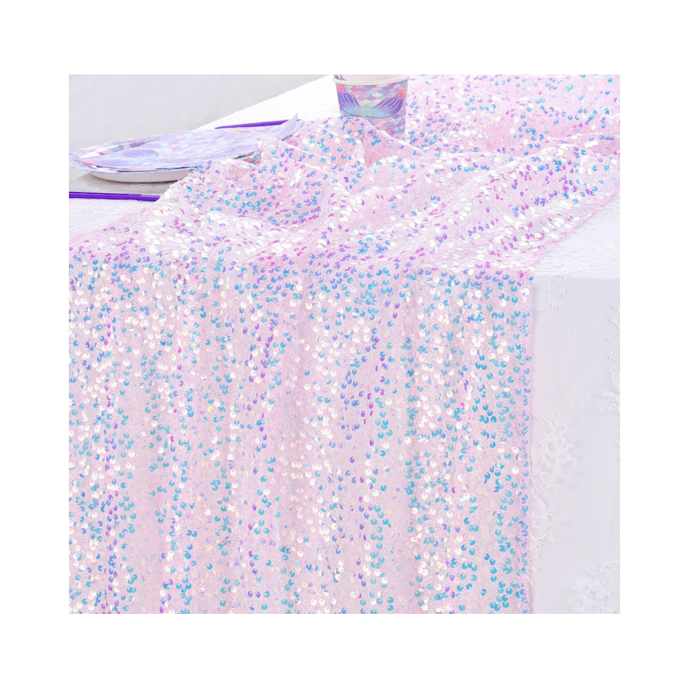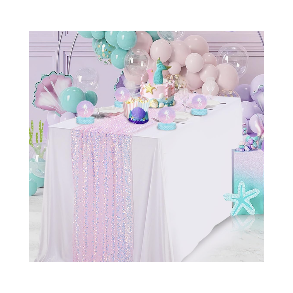 Florlett bordløper i dus lilla med blå glitter paljetter. Det perfekte midtpunktet på bordet til Havfruebursdag, babyshower og andre store og små glitrende begivenheter.