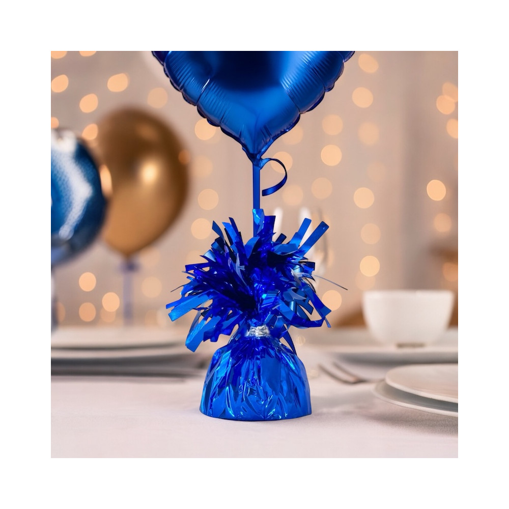 Elegant koboltblå ballongvekt som er designet for å holde heliumballonger trygt på plass, samtidig som den fungerer som en dekorativ borddetalj i seg selv.