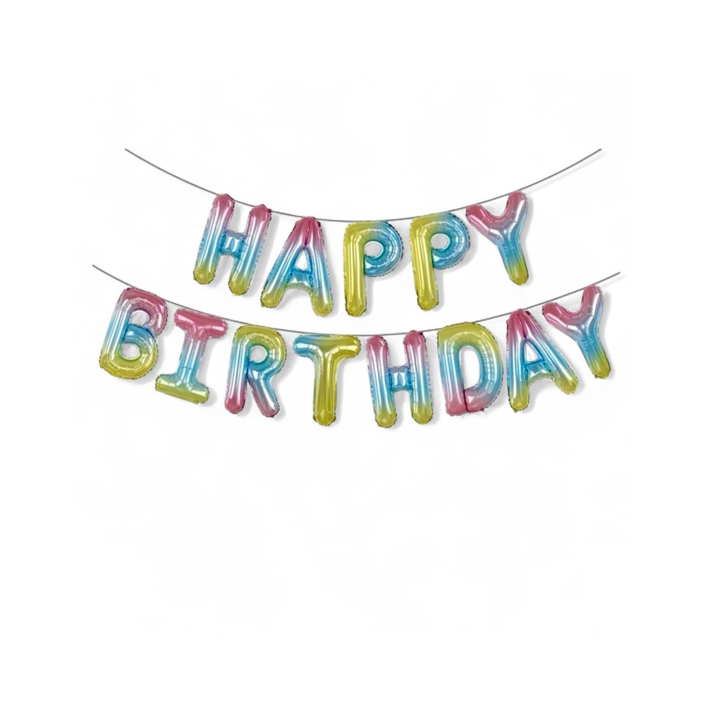 1 pastellfarget Happy Birthday foliebanner med 40 cm høye bokstaver.