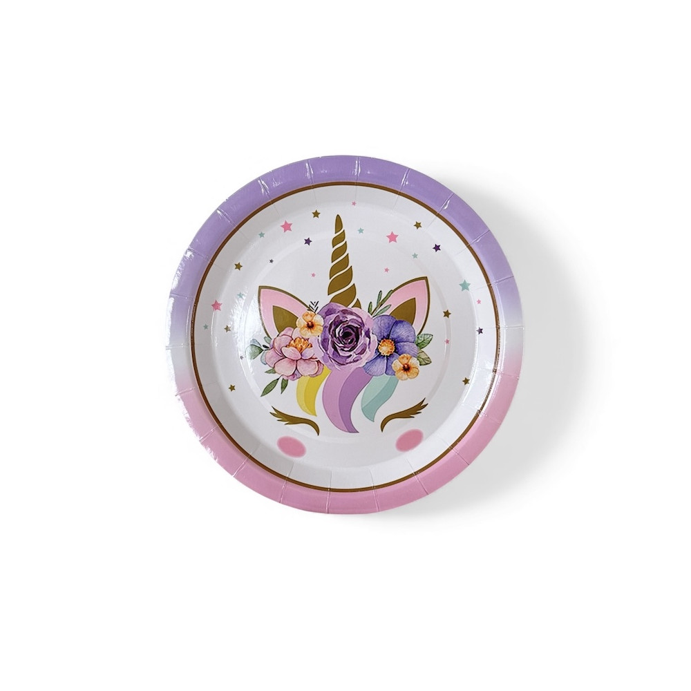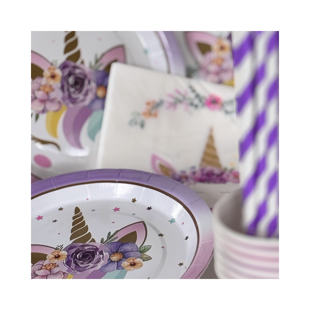 16 stk små Enhjørning papptallerkener i dyp rosa og lillanyanser.