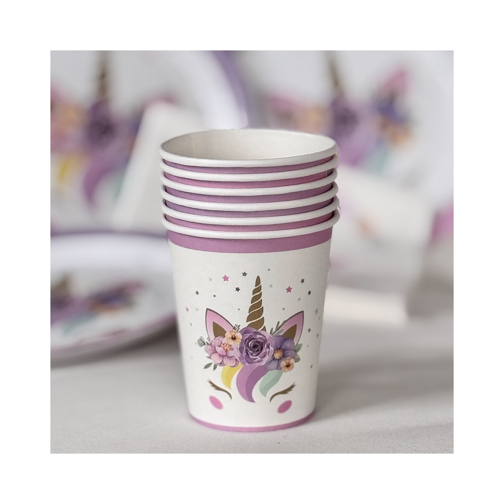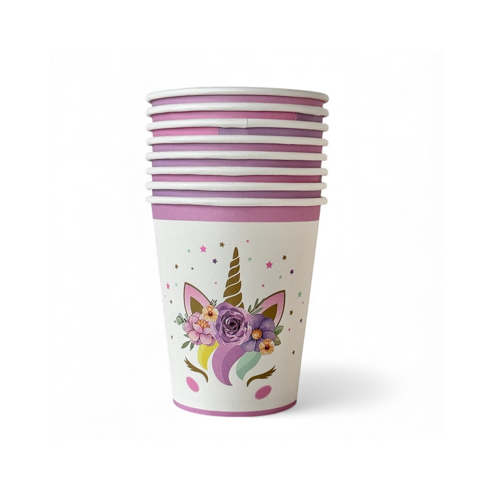 16 stk Enhjørning pappkopper i flotte rosa og lillanyanser.