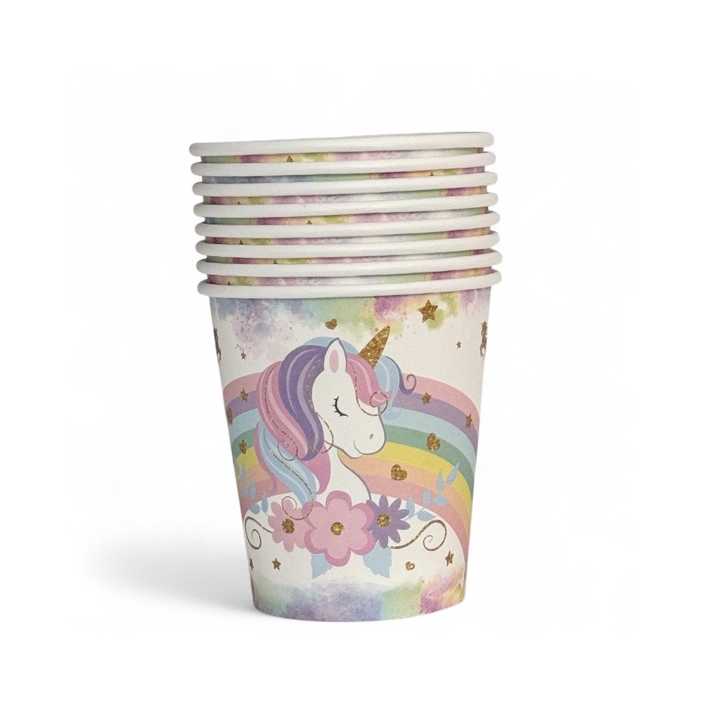 Nydelig Enhjørning bursdagspakke i lekre pastellfarger, med banner og ballonger. Settet består av: