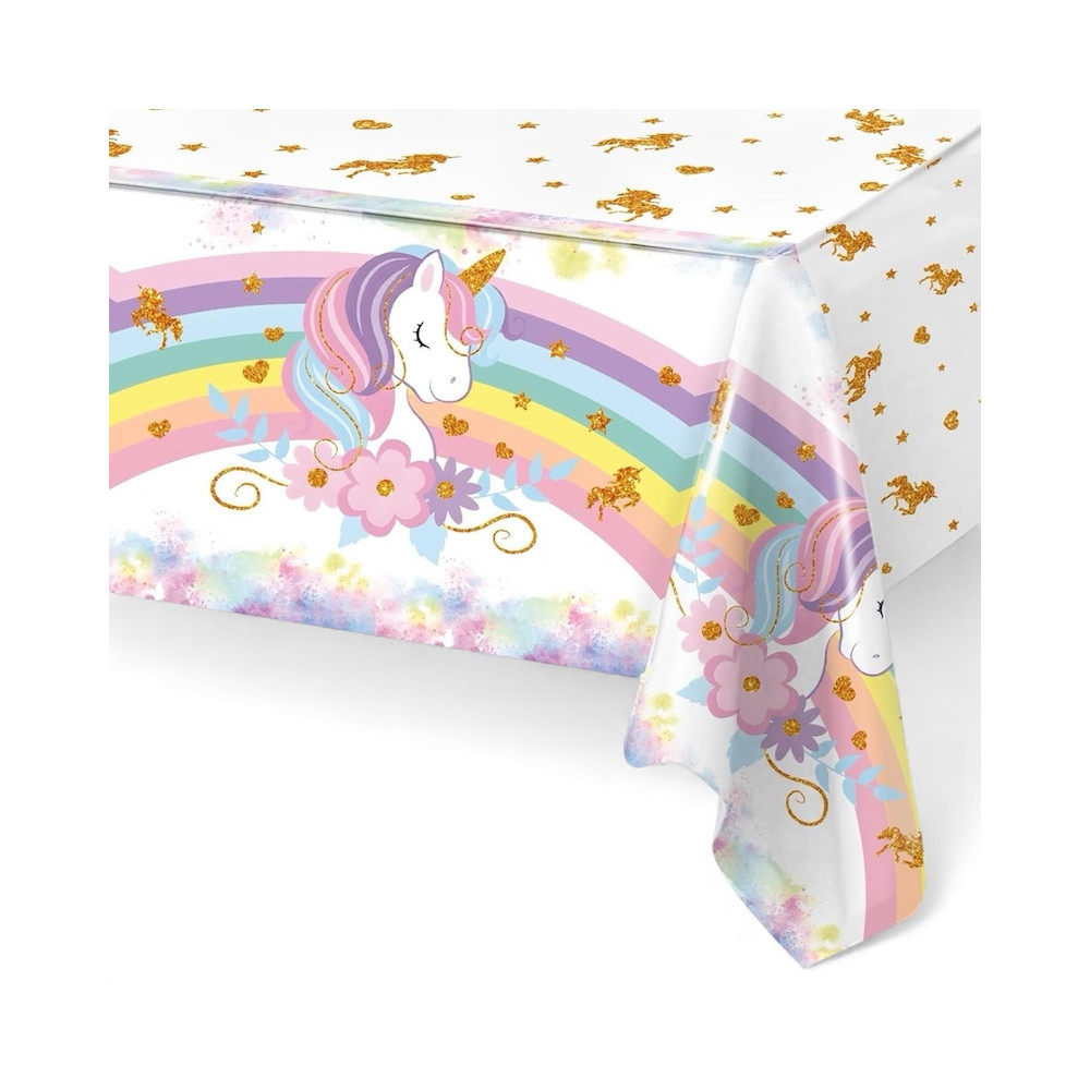 Praktisk plastduk med Enhjørning motiv. Duken er 110 cm bred og 180 cm lang.