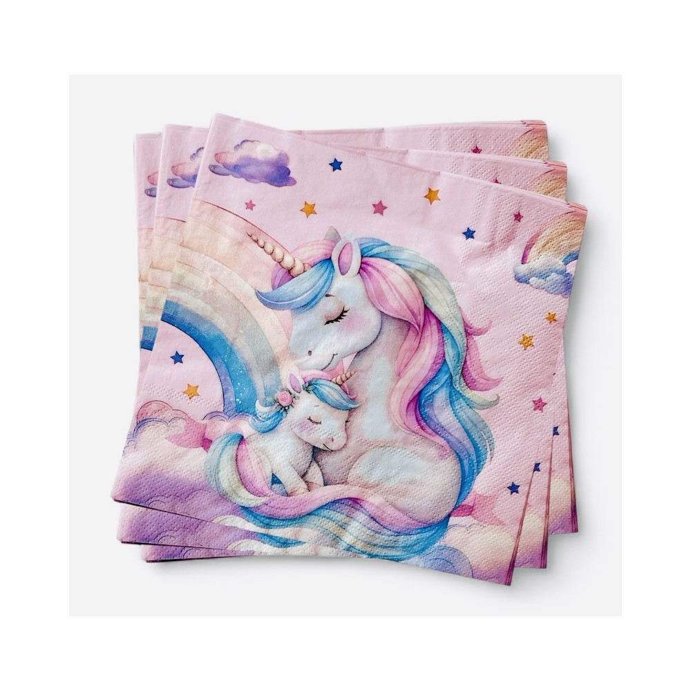 Nydelig Enhjørning bursdagspakke i lekre pastellfarger, med banner og ballonger. Settet består av: