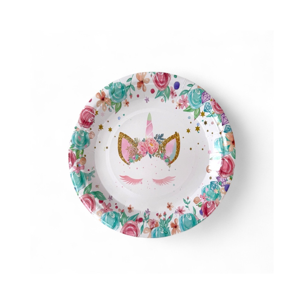 16 stk små Enhjørning papptallerkner som passer perfekt til kaker, desserter og småretter.