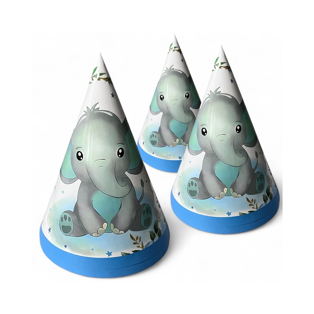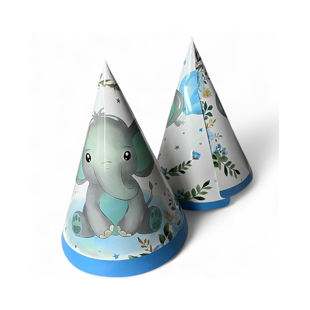 16 stk yndige pappkopper med blå elefant. Perfekt til barnedåp, babyshower og barnebursdag.