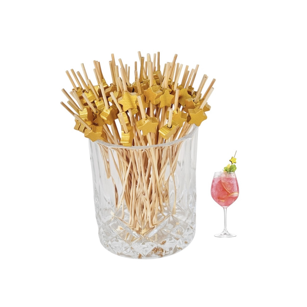 30 stk bambuspinner med gullstjerner i tre. Perfekt til tapas, småretter, kanapeer, frukt etc. Er også veldig flotte i drinker med en oliven, ferskt tranebær e.l. Pinnene kan også brukes til å pynte opp muffins og...