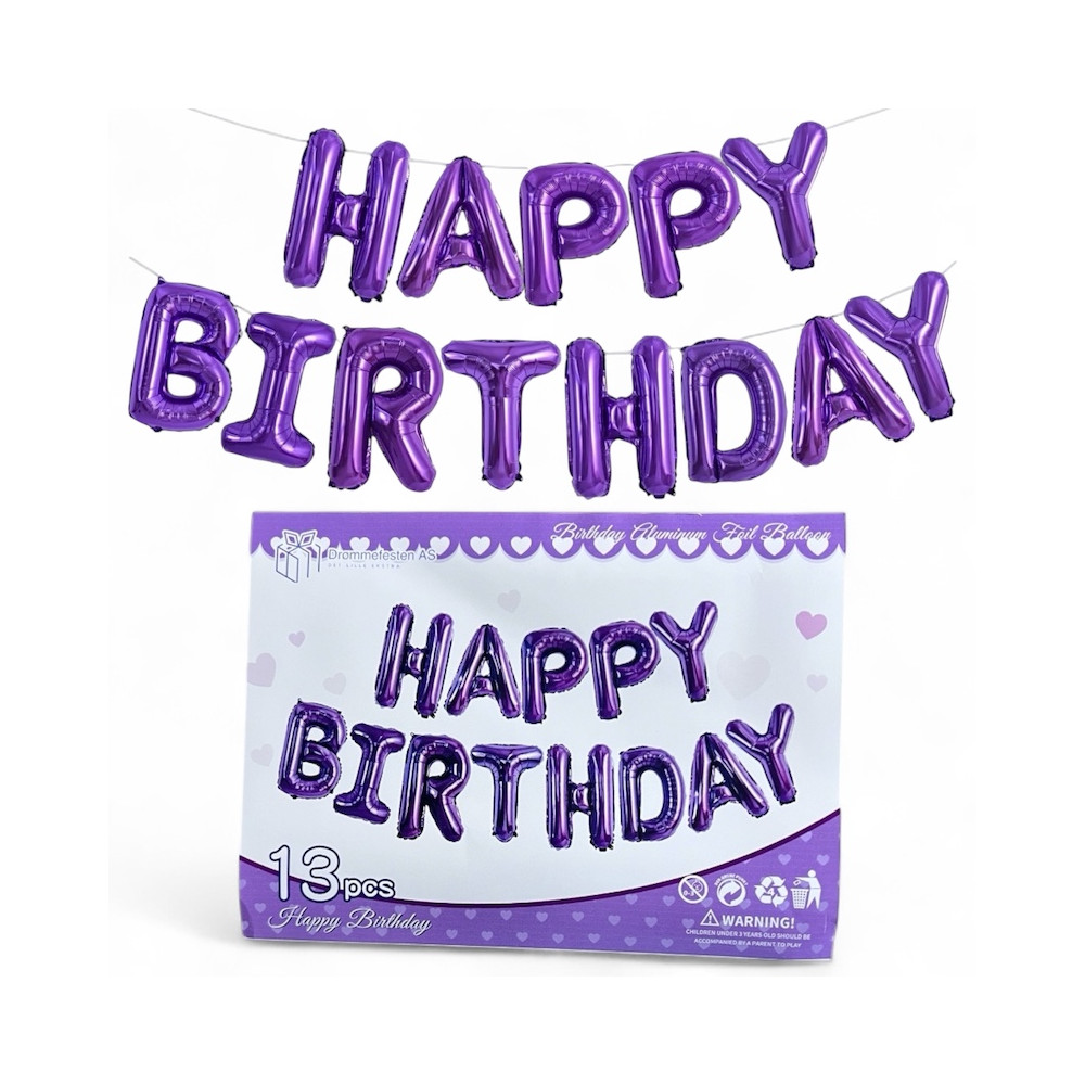 1 lilla Happy Birthday foliebanner (40 cm høye bokstaver)